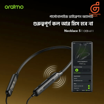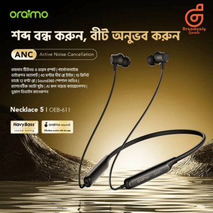 Oraimo Necklace 5 ইয়ারফোনের সাউন্ড কোয়ালিটি দারুণ, নয়েজ ক্যানসেলেশন ভালো কাজ করে এবং ব্যাটারি ব্যাকআপ অনেক লম্বা সময় চলে। নেকব্যান্ড ডিজাইন আরামদায়ক ও স্টাইলিশ — প্রতিদিনের ব্যবহারে এক কথায় চমৎকার!