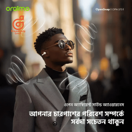 Oraimo OpenSnap ইয়ারবাডস একদম ভিন্নধরনের অভিজ্ঞতা দেয়। ওপেন-ইয়ার ডিজাইনটি খুবই আরামদায়ক ও দীর্ঘক্ষণ পরলেও কানে চাপ পড়ে না। সাউন্ড ক্লিয়ার ও ব্যালান্সড, কল কোয়ালিটিও ভালো।ধন্যবাদ এতো সুন্দর একটি প্রোডাক্ট দেওয়ার জন্য।